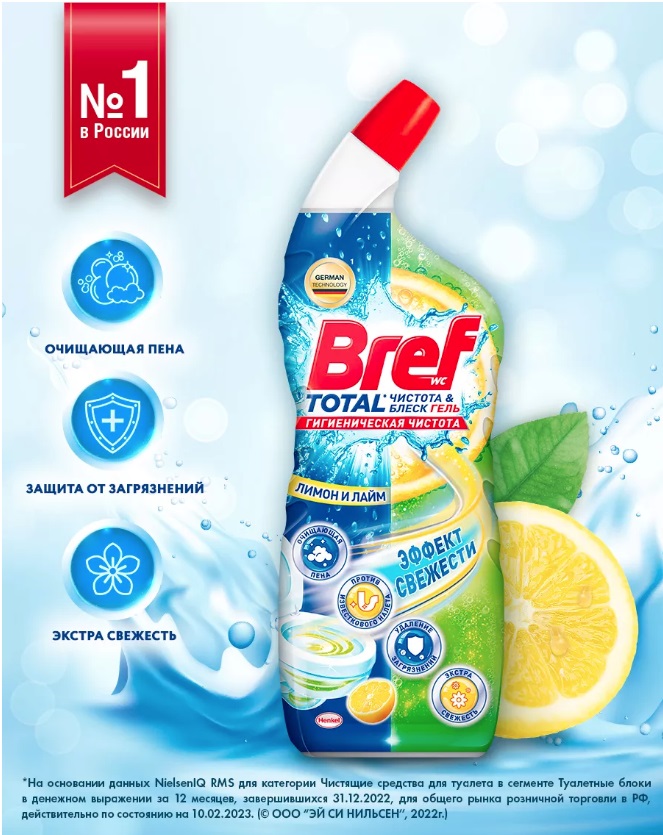 Отзывы покупателей про Гель BREF WC PA лимон 700мл