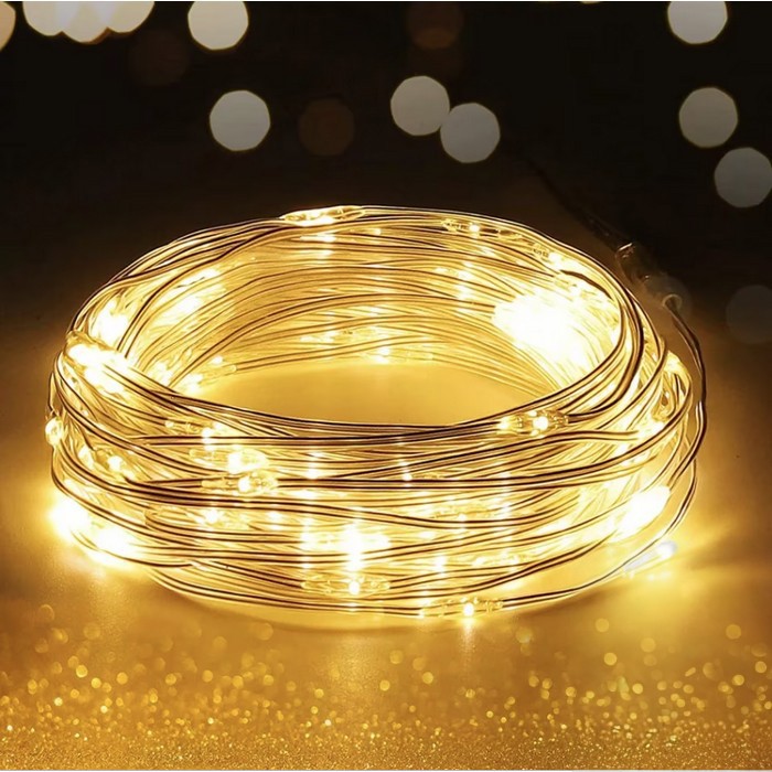 Количество лампочек: 100 лампочек LED Длина: 10м Цвет Led: Теплый Белый Энергоснабжения: Батарейки