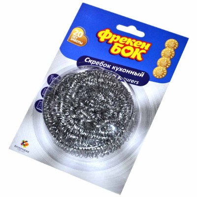 Скребок из качественной стали, предназначен для очистки кастрюль, сковородок, раковин и других прочных поверхностей в доме. Скребок торговой марки Фрекен БОК предназначен для чистки сильно загрязненных поверхностей. Изготовлен из качественной стали. Можно использовать для кастрюль, сковородок, раковины и плиты. Нельзя использовать для тефлоновой и эмалированной посуды/поверхностей. *В настоящее время «Фрекен Бок» является флагманской торговой маркой украинской корпорации «Биосфера». Её специализация — производство товаров, предназначенных для ведения домашнего хозяйства, кулинарии и уборки. Ассортимент «Фрекен Бок» включает более 2000 наименований в различных категориях. Например, надежные и удобные пакеты для мусора, обеспечивающие чистоту и порядок в вашем доме. Кухонные губки производятся с учетом потребностей современных хозяек, обеспечивая эффективное мытье посуды и поверхностей.