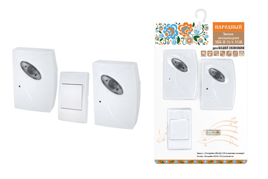 Звонок беспроводной на батарейках "народный" ЗББ-Н-21/1-32М. Используется в качестве дверных звонков или устройств внутреннего вызова.